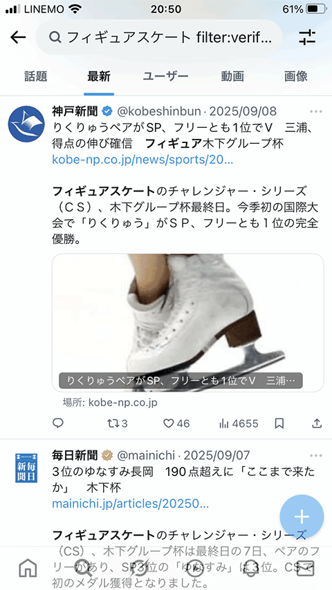 特定のユーザー・アカウントの投稿だけを検索できます。確実に特定のユーザーや、信頼できる特定のアカウントの投稿だけを見たいときに重宝します。